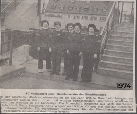 Die Damenmannschaft spielt im Sommer Bezirksoberliga, im Winter Landesliga. 1979 stiegen die Damen sogar in die Bayernliga auf! Geschossen wird schon seit 1972 am Stockplatz beim Vachendorfer Schwimmbad (4 Bahnen). Am Faschingsdienstag findet jedes Jahr, der von den Stockschützen organisierte Faschingszug durchs Dorf statt.